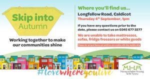 Our team will be travelling through Longfellow Road with a mobile skip, so MHA tenants can dispose of unwanted waste/items. It’s the perfect opportunity to create even cleaner and greener neighbourhoods!