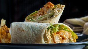 - Cook the Wraps: Heat a drizzle of oil in a pan, once heated add your wrap and cook for 2-3 minutes each side until crispy and golden.