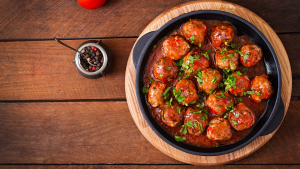 - Glazing the meatballs: when the meatballs are cooked, remove from the oven and to the sauce, rolling them around to ensure that they are well coated.