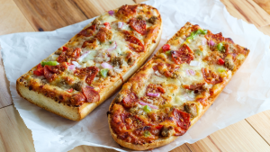 - One loaf French bread split lengthwise and divided into six equal portions.